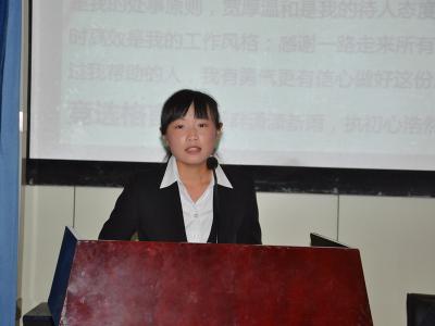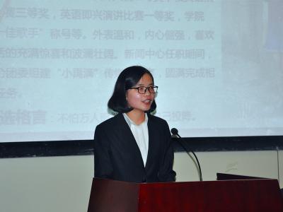 随后,15级候选人常瑞廷、孙群艳、郑柳钦、田凤云、王晴、严雨浩、杨娱琦、黄欣然、许悦、胡雨雯、陆雪妮、王客予、李蒙、刘双郡、张凯星先后完成了竞选演讲。他们或机智幽默,或活泼开朗,或风趣健谈,既让全体代表感受到了他们一年以来的成长与收获,又表达了自己对于未来工作的规划与展望。