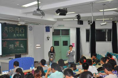 首先,何稼老师上台先通过几张照片给我们展现了他个人的简历以及过去十多年的经历,重点与我们共同分享了他在南洋理工大学的精彩人生,之后他从微生物矿化法,微生物气泡法,微生物膜法三个方面举例让我们了解了微生物岩土技术的研究进展,为同学们以后的科技创新增添了浓厚的兴趣。江朝飞学长在进行简单的对力学专业的介绍之后,将我们的目光引向了力学就业前景,他给我们分析了如今力学目前如航空航天,高速铁路等较为热门的方向,引导我们努力做科研。俞小彤学姐对我们的学习,就业去向,保研小技巧做了多方面的阐述,让我们提前了解了研究生的生活。而最后上场的杨立夫学长强调了课外学习以及课外生活,告诫我们:用心做好每一件事。